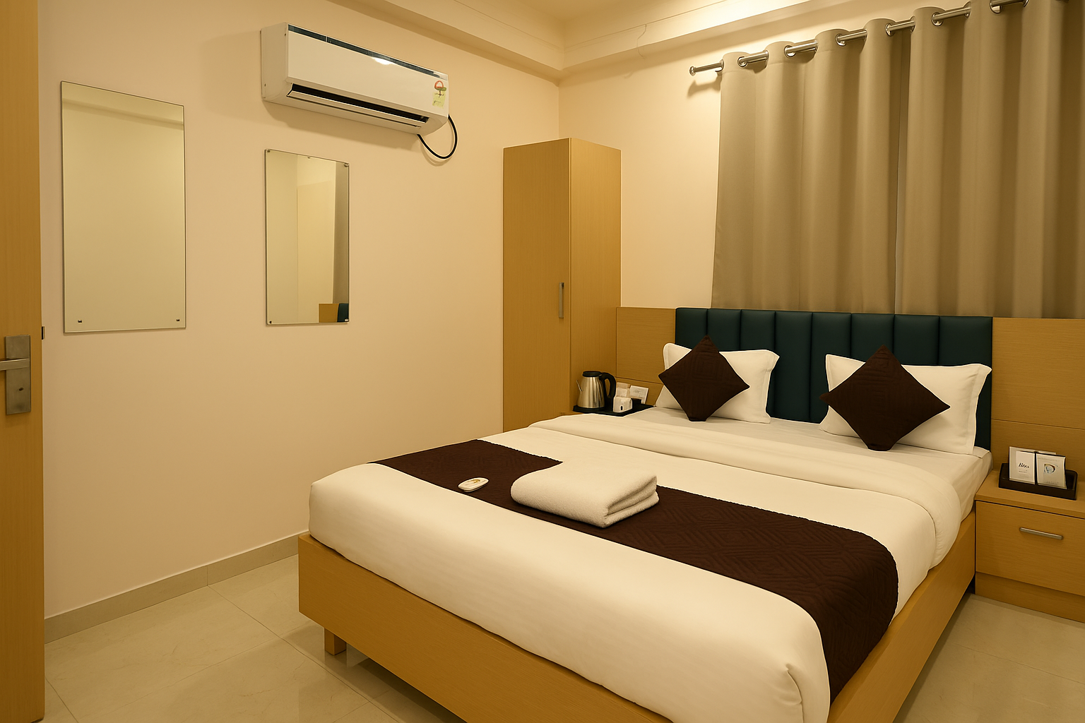 The property is secured with 24/7 CCTV surveillance in common areas. Fire extinguishers and smoke detectors are installed for guest safety. Trained staff available for emergency assistance. Strict guest verification with valid Government ID at check-in. Only registered guests are allowed in rooms for security reasons. The property follows all local safety and hygiene guidelines. In case of any emergency, guests must follow staff instructions immediately.